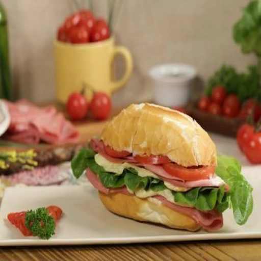Pão, alface, tomate, ovo, presunto, queijo e molhos