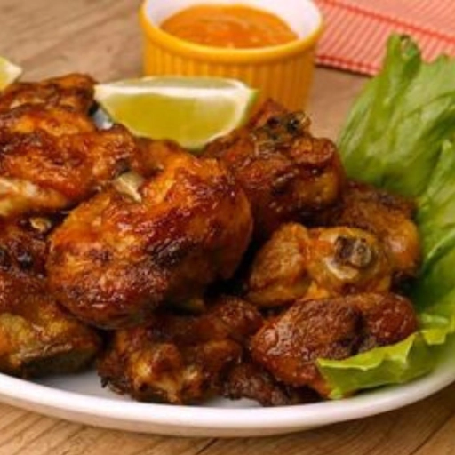 Pedaços de frango frito empanados. Acompanha molho especial